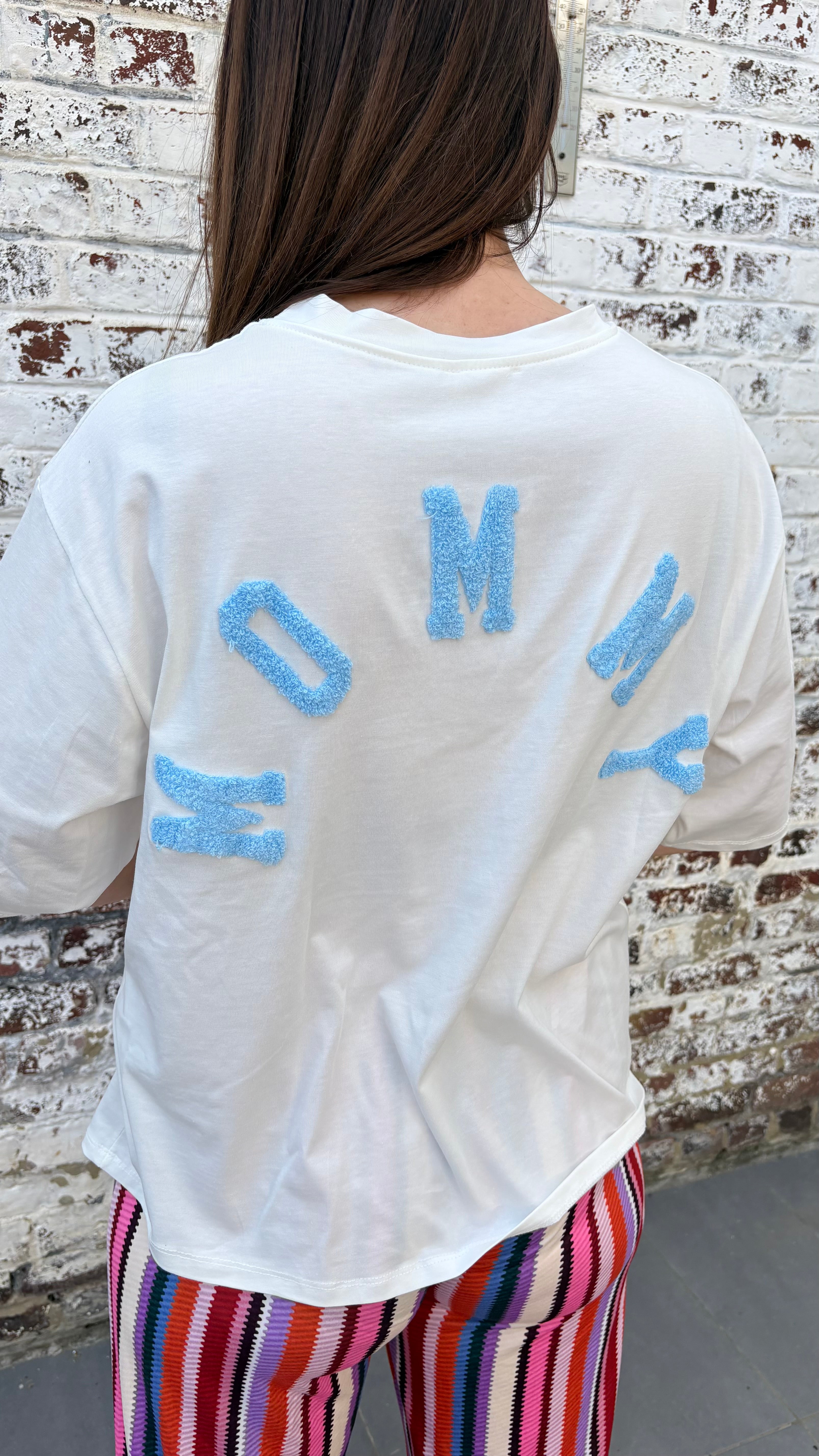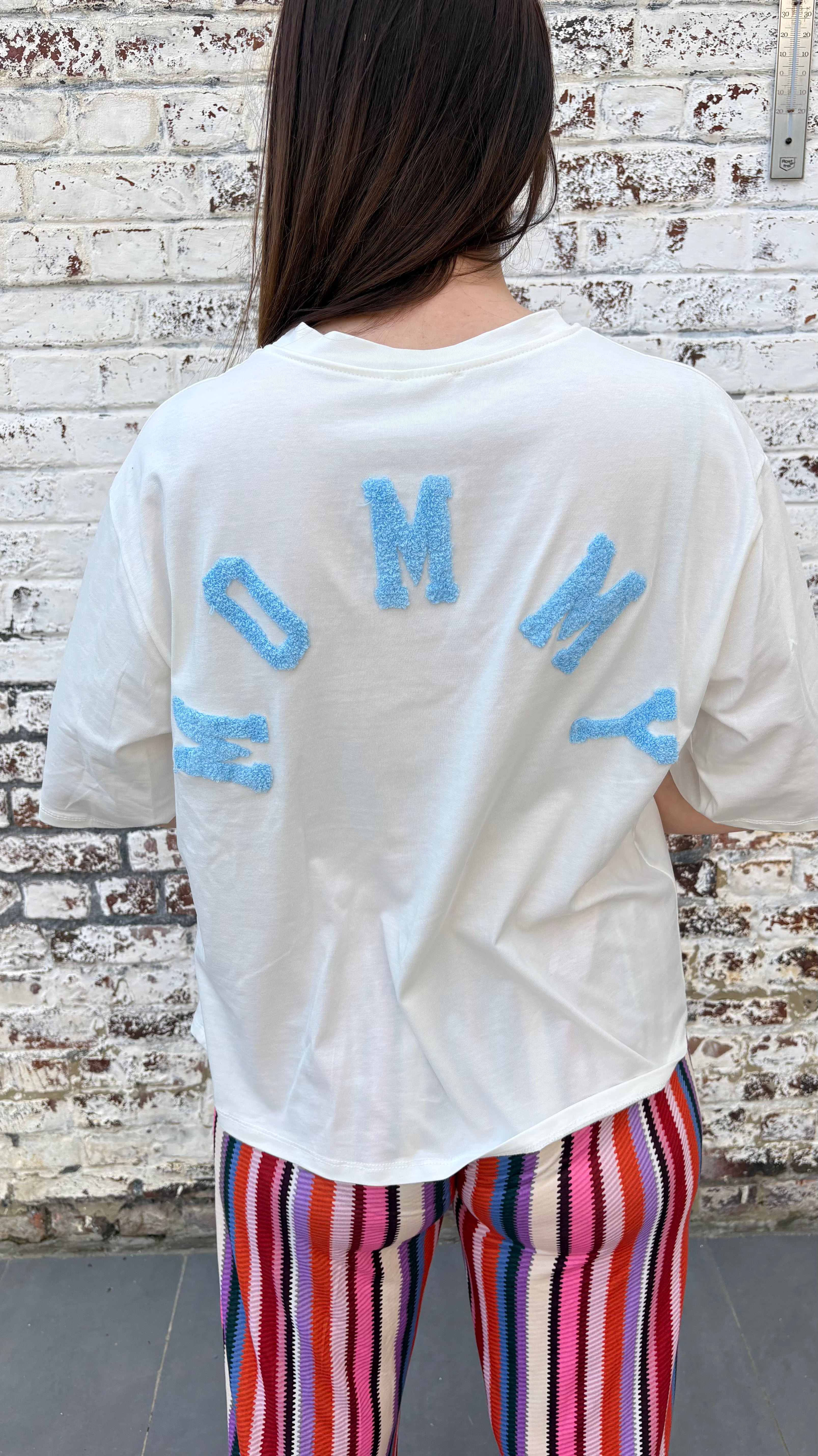 Shirt mommy | wit-blauw